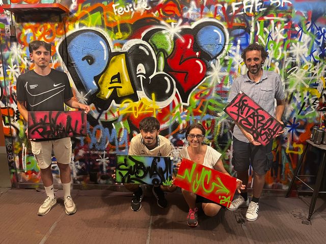 スプレーを使ったグラフィティアートの描き方を、ブルックリンで活躍するアーティストに教わる1時間のレッスンです。152cm四方のキャンバスを使用し、出来上がった作品はお持ち帰りができます。1名参加も大歓迎!