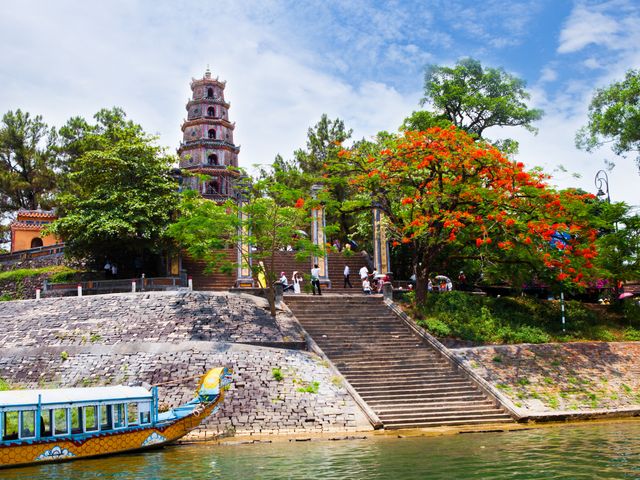 フエに来たら必ず観光したいのが、世界遺産にも登録されているフエの建築物群。その壁に囲まれた城塞を三輪自転車『シクロ』に乗ってゆったり遺跡めぐりしましょう!その後はタクシーに乗り、ティエンムー寺を目指します♪