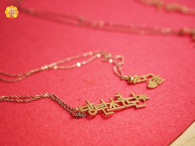 韓国旅行のお土産として、手作りのアクセサリーはいかがですか?ハングルの母音と子音のパーツを組み合わせて自分の好きな単語をデザインし、世界にひとつだけの作品を作りましょう。体験前後は、明洞でグルメや買い物、仁寺洞散策など人気の観光スポットへお出かけするのもおすすめです。ご予約はこちら。