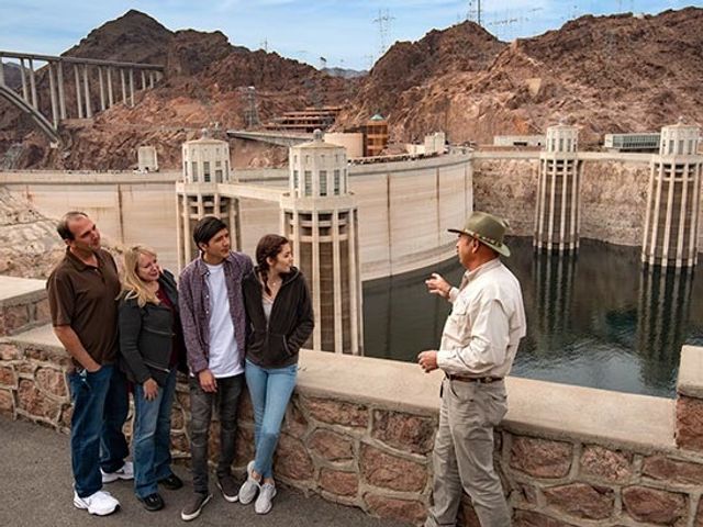ピンクジープ社の快適バンで行くフーバーダム半日観光ツアー。発電所内部見学ツアーへ参加し、ダム周辺を見渡せる展望デッキへもご案内します。移動中は人工湖「ミード湖」を車窓からご覧いただけます。