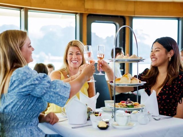 シドニー湾の絶景を眺めながらアフタヌーンティーを楽しむ贅沢なクルーズ体験!乾杯のスパークリングワインと共に、美味しいプラッターを堪能しながら、心地よい海風と絶景を満喫できます。午後の特別なひとときをお過ごしください!