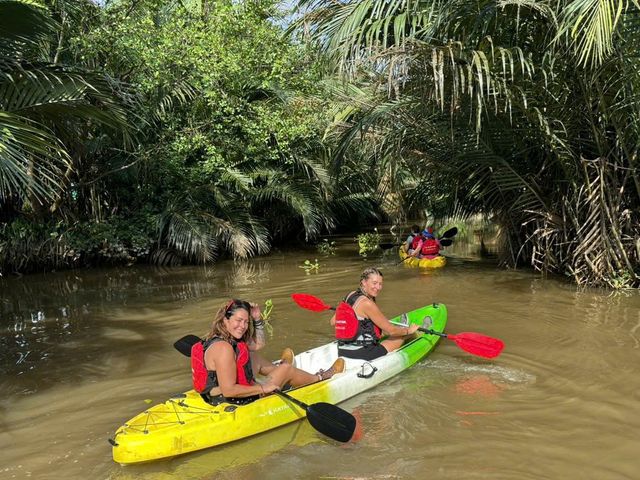 アクティブに過ごしたい方におすすめ!手漕ぎボートでのメコン川クルーズに加え、カヤック体験もできるミトー観光1日ツアーです。ランチはご自身で作るバインセオのほか、象耳魚(エレファントフィッシュ)やフーティウなどベトナム南部の郷土料理が盛りだくさん。果物の島やココナッツキャンディ工房、独特の雰囲気をもつ永長寺も訪問します。日本語ガイドがホーチミンのご宿泊ホテルからご案内するので安心!プラカゴ店「ハッパーズ」など人気スポットでの解散もお選びいただけます。