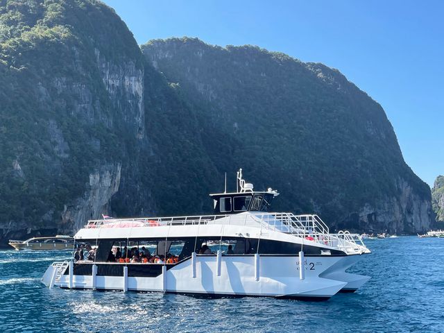 揺れの少ないカタマラン船に乗ってピピ諸島を巡るツアーへご案内。映画『ザ・ビーチ』の舞台としても知られるマヤベイや、絶壁に囲まれた美しいピレ・ラグーン、無人島のカイ島などを訪問します。