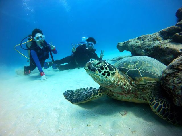 最大3名までの少人数制、日本語でご案内、送迎付きと初めての方でも安心できるポイントが揃った体験ダイビングプランです。透明度の高いカヒビーチへご案内します。ビーチエントリーなので、船酔いの心配も不要♪
