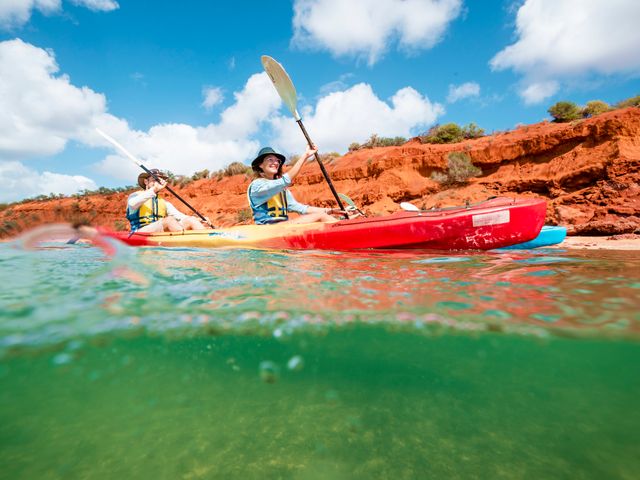 世界遺産シャークベイの透き通った美しい海でカヤック体験!普段なかなか体験することのできない大自然の中でのんびりとした時間をお過ごしいただけます。バーベキューランチやブッシュフード散策も付いたお得なプランです!