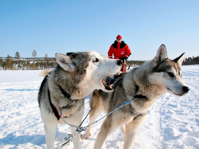 フレンドリーなハスキー犬たちが元気いっぱいにお出迎え!わんちゃん達が一生懸命に引っ張るそりで、一面真っ白なサーリセルカの大雪原を駆け抜けます。人懐っこいハスキーたちと触れ合う、楽しいひとときをお過ごしください。犬ぞり体験後は、焚き火を囲んで温かい飲み物をどうぞ。