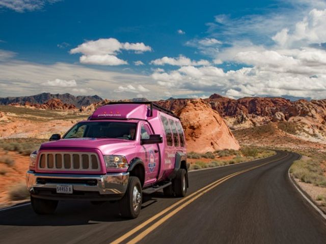 炎のように赤く輝く岩々が特徴のバレーオブファイヤー州立公園を観光。雨と風による侵食によって生まれたさまざまな奇岩は必見です。アトラルロックでは先住民が残した壁画もご覧いただけます。移動車は全席リクライニングで乗り心地抜群のピンクジープ!