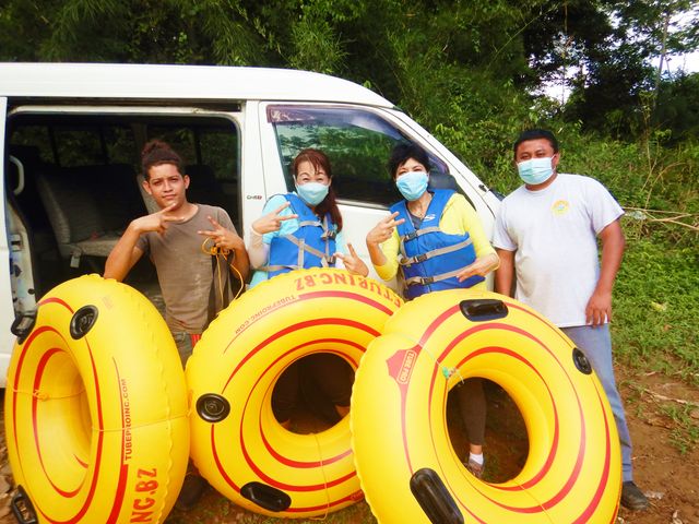 体験型アクティビティ!洞窟内に流れる川で大きなタイヤのチューブに乗って川下り。洞窟内は水晶が連なる鍾乳洞となっており、ライトを当てると宝石のようにキラキラと光りとても幻想的です。真っ暗な洞窟の中でのケーブチュービングはスリル満点です。