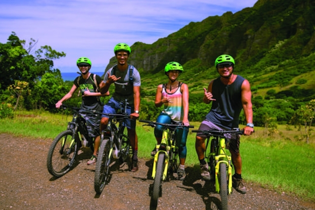 勾配や未舗装のトレイルなど、さまざまな地形を巡る中級者向けのツアーです。オフロード用の電動アシスト付きマウンテンバイクで、雄大なクアロアの大自然の中を巡るのでエコフレンドリー。ジャングルや尾根、写真撮影スポットを含む約24キロのコースを自転車で駆け抜けます!