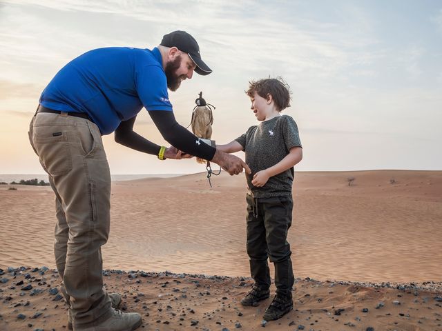 ドバイ砂漠保護区(DDCR)内でサファリドライブと鷹狩り体験が!野生動物に遭遇しながら砂漠をオフロード車で駆け抜けた後は、鷹匠の技を鑑賞したり、ご自身で鷹を飛ばします。手つかずの砂漠で行う鷹狩り体験の迫力と美しさは、忘れられない思い出に。