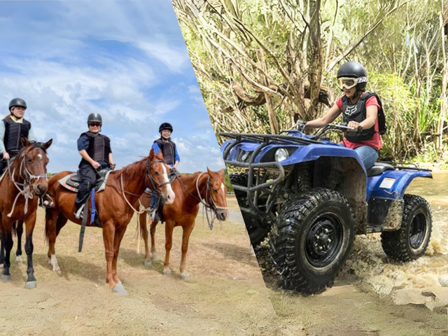 乗馬もATVも30分 / 60分のコースから選べます。のんびり乗馬の後にアクティブにバギーで大興奮もOK!