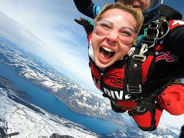 興奮のスカイダイビングをインターラーケンのアルプス上空から体験!15~20分のフライトを満喫した後、気づけば高度4,000mへ。時速約200kmの爽快ダイブ、そしてユングフラウ地方の山脈や湖、街並を天空パノラマビューでエンジョイしましょう!