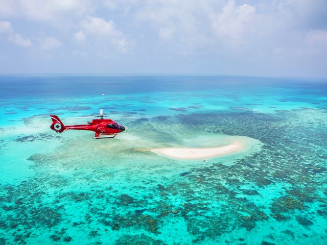 世界遺産グレートバリアリーフに浮かぶ真っ白な砂の島「サンドケイ」で非日常体験!ヘリコプターで移動した後は、完全プライベートな時間。シュノーケリングなど思い思いのことをお楽しみいただけます。美しい海に囲まれながら贅沢な時間をお過ごしください✨