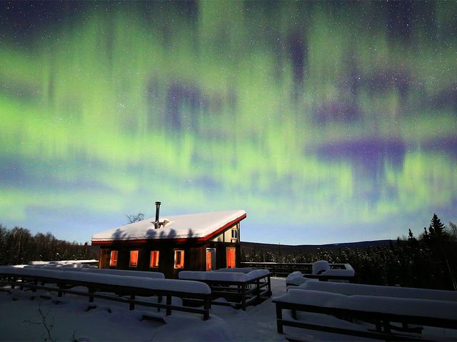 オーロラロッジは貸し切りのため、他社のグループと混ざることは無し。少人数でゆったりとした空間の中、オーロラが出現するのを待つことができます。ツアーは夜に出発し、翌朝までの7~10時間の鑑賞時間を確保。現地在住の日本語ガイドが案内するので言葉の心配も無しです。空一面に広がるオーロラをぜひお楽しみください。