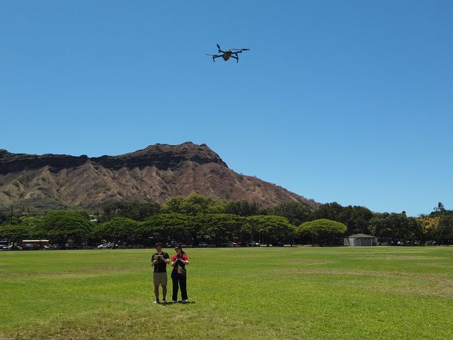 ダイヤモンドヘッドが見渡せるカピオラニ公園で、空撮写真を体験してみよう!写真や動画の撮影も!日本人インストラクターが親切・丁寧にプライベートで教えてくれるコースが60分で$125から。