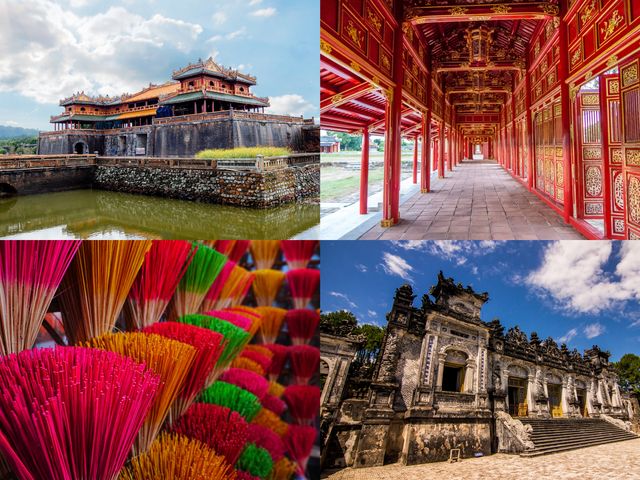 古都の歴史を今に伝える建造物群が、ベトナム初の世界遺産となったフエを観光する1日ツアー。壮麗な王宮などを見学後は、ベトナム料理が堪能できる昼食セットをお召し上がりください。カラフルな線香が写真映え間違いなしのトゥイ・スアン村にもご案内!夕食はダナンでミークアンやバインセオをご賞味ください。