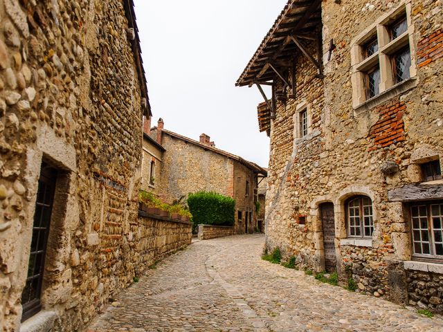 リヨンから車で約1時間、⼩⾼い丘の上にあるペルージュ。⾼さ15mの城壁の⾨をくぐり抜けると、まるでタイムスリップしたかのような風景が広がります。花に飾られた⺠家に沿って⽯畳の⼩路が続き、中世の⾯影を今に伝える⾵情豊かな村は、リヨンとは異なるフランスの魅力を伝えてくれます。
