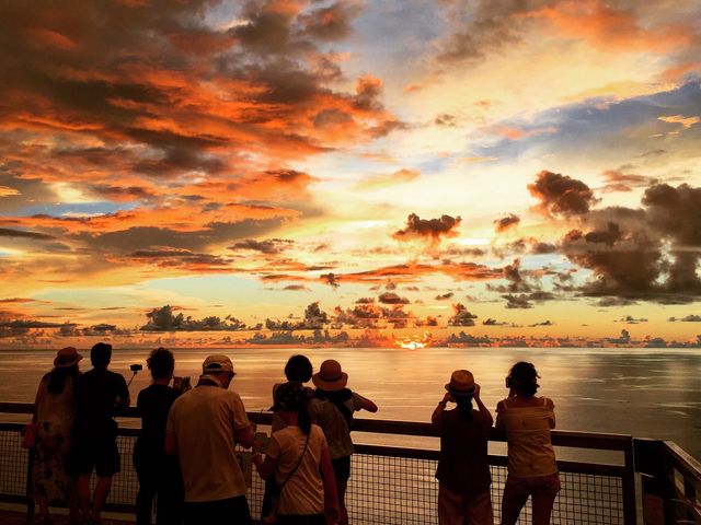 グアム観光局公認の日本人ガイドがサンセットのベストタイミングに合わせて、グアムで人気No.1の絶景ポイント「恋人岬」にご案内いたします。(展望台チケット付き!)
