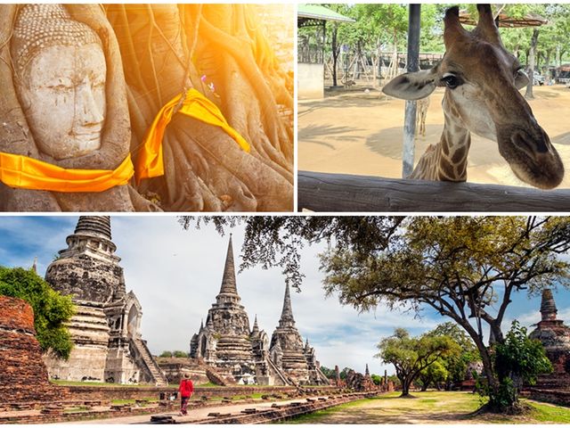 アユタヤ観光の新定番!歴史的な世界遺産と話題の新動物園「シーアユタヤライオンパーク」を1日で巡れるツアーです。大涅槃仏や大樹に埋まった仏像、人気の3仏塔などアユタヤの見どころを効率よく巡りつつ、2023年開園の新動物園では珍しい動物とのふれあいや写真撮影も楽しめます。