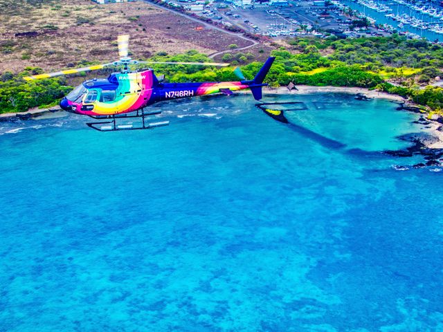 絶景続きのコナコーストを上空から一望できるヘリコプターツアーです。透き通る海が広がるカイルア湾や広大なコナコーヒー農園、火山のフアラライ山など、ハワイ島ならではのダイナミックな大自然をご覧ください。また、機体はドアありまたはドアなしからお選びいただけます。