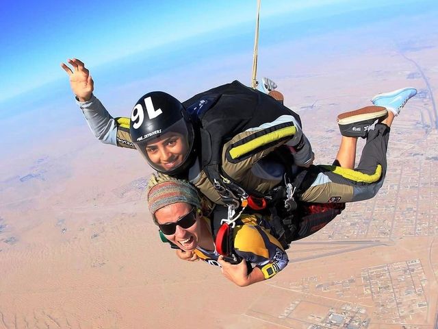 ドバイだからこそ体験できる、砂漠の上空をスカイダイビング!時速約190Kmでフリーフォールをして、パラシュート展開後は空からの砂漠の新しい魅力的な世界が見れます!スカイダイビング中のお写真と動画もついてきます。便利なホテルからの往復送迎プランもご用意。