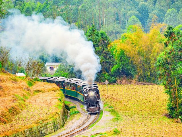 現役の蒸気機関車、嘉陽小火車に乗って楽山大仏を目指します♪のんびりとした田舎風景を眺めながら、蒸気機関車による列車の旅をお楽しみください。楽山大仏では遊覧船から眺める壮大なスケールの石刻座仏や、山頂にある凌雲寺から岷江の美しい眺めを堪能いただけます!