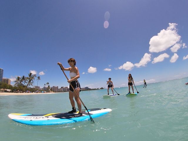 アラモアナビーチの穏やかな美しい海でSUP(スタンドアップパドル)に挑戦してみませんか?ウミガメの生息地としても知られ、運が良ければウミガメに会えるかも!日本語インストラクターが丁寧にレクチャーしてくれるので、言語に不安がある方や初めての方も安心♪気軽に参加できるグループレッスンまたはマンツーマンのプライベートレッスンからお選びいただけます。ご予約はこちら。