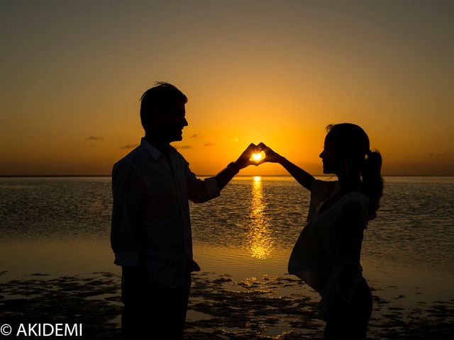 カンクンのビーチに沈む美しい夕日をバックに、一生の思い出に残るウェディング・フォトを撮影します。日本人フォトグラファー「Aki Demi」監修の、メキシコ人カメラマンによる撮影です。カジュアルな服装でお手軽に撮影可能です。