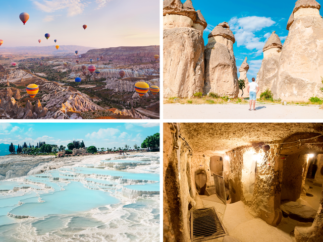混載催行でリーズナブルになりました!トルコの世界遺産2か所(カッパドキアとパムッカレ)を巡るイスタンブール発着2泊3日ツアーです。カッパドキアではギョレメ野外博物館やキノコ岩で有名なパシャバー、地下都市などの見学に加え、憧れの洞窟ホテルに宿泊。2日目は古都コンヤを経由し「綿の城」と呼ばれるパムッカレへ向かいます。パムッカレでは最大の見どころ石灰棚と古代都市遺跡ヒエラポリスや遺跡プールなどを訪問、夕食付きの5つ星ホテルを手配します。大人気の気球体験付きプランもご用意していますのでぜひ利用ください。