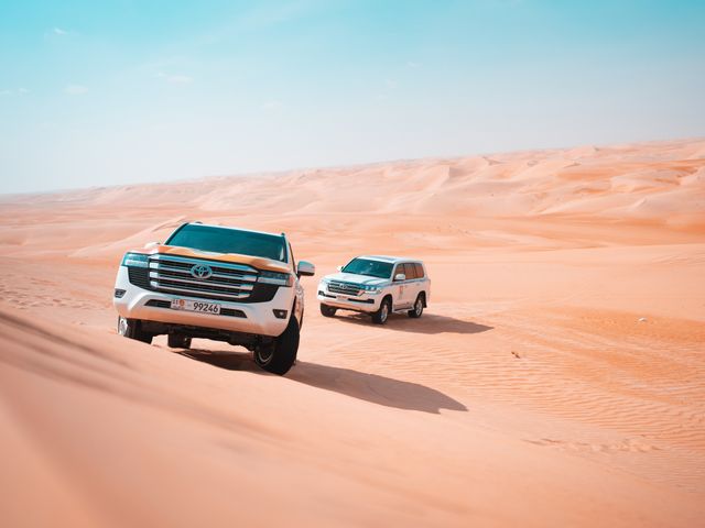 アブダビ発、ここでしかできない体験をお届け!広大なリワ砂漠で4WDを運転できる特別ツアー。自分の運転で砂丘を駆け抜けるスリリングな体験は一生の思い出になるはず。経験豊富なインストラクターが砂漠走行のコツを指導、サポートするので安心です。美しい砂漠を眺めながらのピクニックランチ付き。