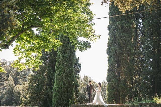 フィレンツェ観光名所でのプロによるウェディングフォト前撮り/後撮りの写真撮影。