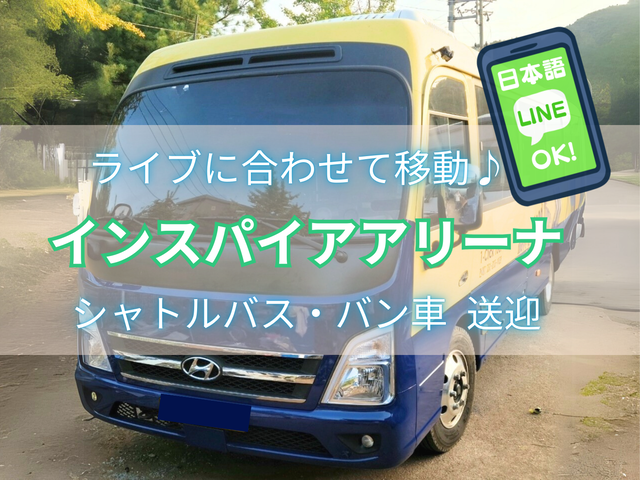 ソウル郊外の仁川市に位置するインスパイアアリーナは交通がとても不便。ソウル⇔インスパイアを直行移動できるシャトルバス送迎。事前予約で安心してライブを楽しみましょう!