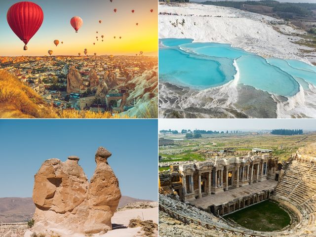 トルコの世界遺産2か所を巡るイスタンブール発2泊3日ツアー!1日目はイスタンブールからパムッカレへ移動し、石灰棚と古代都市遺跡ヒエラポリスや遺跡プールなどを訪問。2日目は古都コンヤを経由してカッパドキアへ移動し、憧れの洞窟ホテルに宿泊します。3日目のカッパドキアではキノコ岩や地下都市を見学。世界遺産カッパドキアを上空から堪能できる人気の気球ツアー付きプランもご用意。ご予約はこちら!