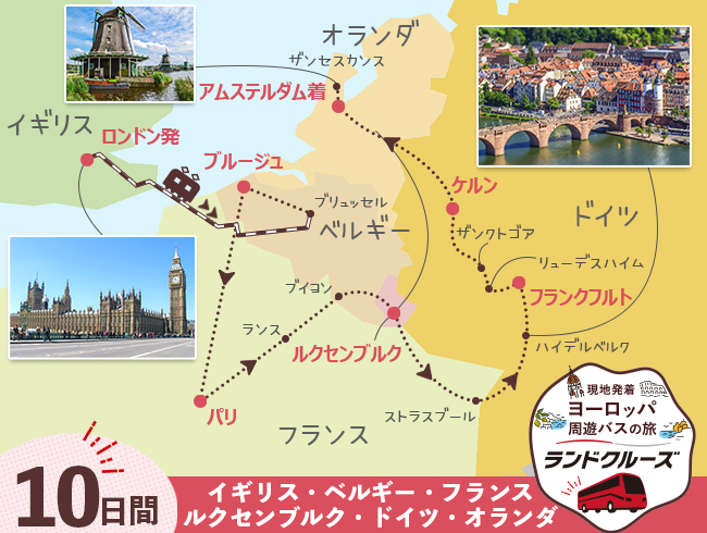 ヨーロッパ周遊ランドクルーズ!ロンドン/タワーブリッジ・セントポール大聖堂、ブリュッセル、ブルージュ/マルクト広場、パリ/エッフェル塔・凱旋門、ルクセンブルク、フランクフルト、ケルン/ケルン大聖堂、アムステルダムなどを訪問。1名様から催行、充実した周遊の旅をお楽しみください!