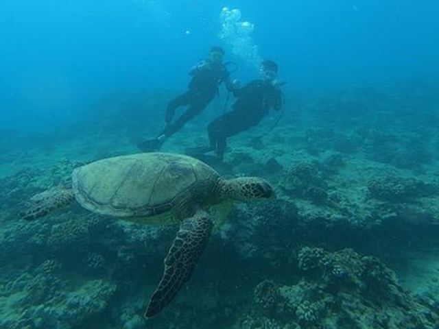 一般的な1ダイブが30~40分のところ、こちらのツアーでは1本目は15分、2本目は20分と2回に分けてダイビングを行い、少しずつ海に慣れていきます。ビーチからのエントリーで浅瀬からスタートできるのも安心、初心者にもおすすめです。水中の撮影を楽しめるGoProレンタルつきプランもご用意しました!ご予約はこちら。