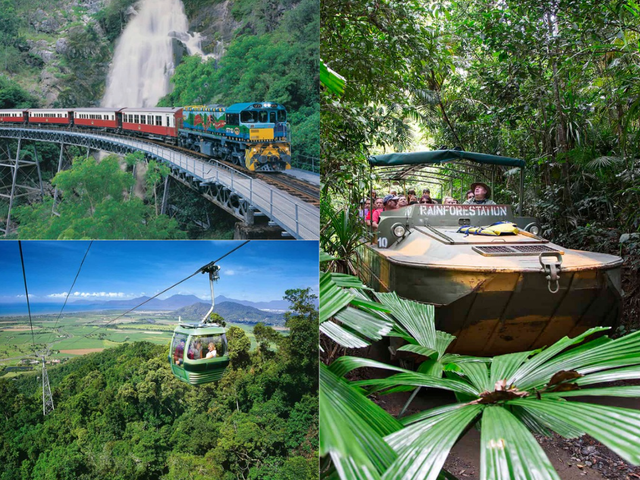 世界遺産キュランダの熱帯雨林を探索する日帰りツアー。鉄道やスカイレール、アーミーダックに乗って熱帯雨林を余すことなく楽しめます。キュランダ村ではショッピングも可能。キュランダ鉄道をゴールドクラスにアップグレードして贅沢気分を味わうのもおすすめです。