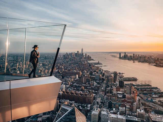 ニューヨークでもひときわホットなエリアとして日本でも話題の「ハドソン・ヤード」内にある展望台、エッジの入場チケットです。地上約335メートルに位置するこの展望台はガラスの壁に囲まれ、ニューヨークの景色はもちろんハドソン川やニュージャージー州まで眺めることができ、360度パノラマで楽しむことができます。床がガラス張りの部分もあり、スリリングな体験も!