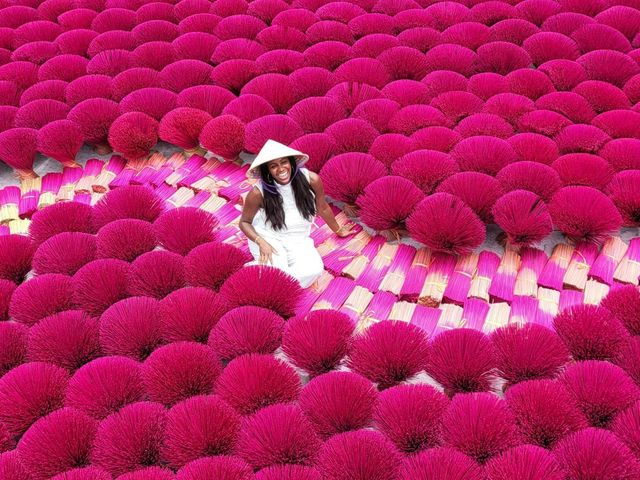 ベトナムの伝統工芸の村、クアン・フー・カウ線香村を訪れるフォトジェニックなツアーです。芸術的なお香づくりを間近で見ることができ、色鮮やかなお香をバックに映える写真を撮ることができます。また、ハノイのトレインストリートでは民家の間を縫って進む電車を見ながら名物のエッグコーヒーもお楽しみいただけます。