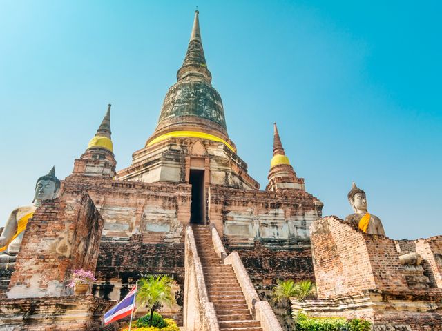 到着日におすすめ!空港発のアユタヤ遺跡観光と象乗りができる半日ツアーです。アユタヤの中でも特に人気の場所へご案内します。半日ツアーなので、午後は自由にバンコク観光も可能。象に乗って遺跡をバックに写真撮影も!タイ料理のランチ付きプランも選べます。