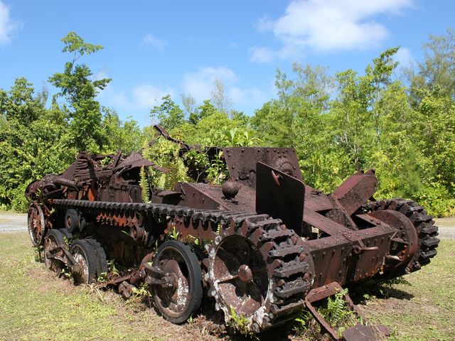旧日本軍の指令部跡、防空壕、戦車や大砲、あるいはアメリカ軍の水陸両用戦車などを見学しながら、日本語ガイドと島内を巡ります。その多くは攻防戦により弾の跡などが残っており、戦争の悲惨さを痛感させられることでしょう。しかし、今後の平和へ祈りを込めてこの史実に1度触れられてみてはいかがでしょうか。