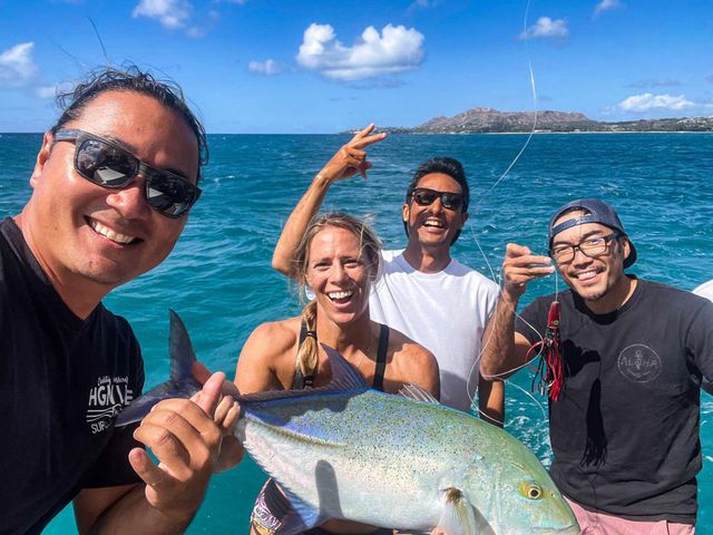 西オアフ近海の美しい海で釣り体験を楽しめる、約2時間の貸切クルーズです。釣り道具はすべて揃っているので、手ぶらで気軽に参加可能!経験豊富な船長とクルーたちが魚を釣りのコツを丁寧に教えてくれます。早朝のツアーなので、運が良ければハシナガイルカに会えることも♪ご家族や友人同士でお楽しみください。