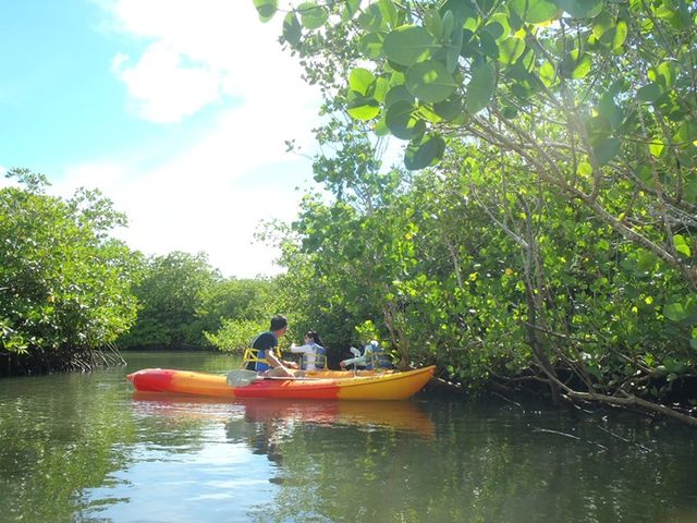 迷路のようなマングローブの森で探検気分を満喫。パラオ・パシフイックダイバーズ(旧 オアシス)限定のマングローブの森なので他店のお客様に会うことはほとんど無く、プライベートなカヤックツアーがお楽しみいただけます