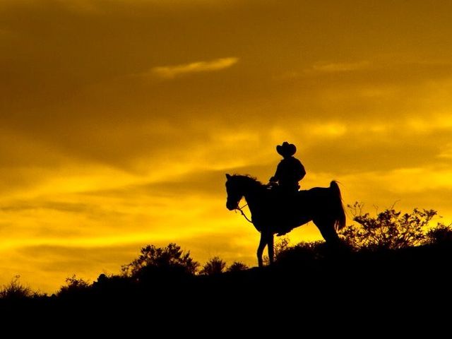 馬の背に揺られながら大自然を堪能!荒野に夕日が沈む様子はまるで映画のワンシーンのよう。馬は訓練されているので初心者でも安心です!アメリカン&カウボーイな夕食をとったら、キャンプファイヤーを囲んでリラックス。