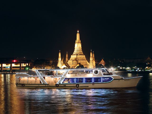 シャングリラホテル直営の豪華客船ホライズン。チャオプラヤー川沿いにライトアップされた王宮やワットアルンは一見の価値有り。昼とは違うロマンティックなバンコクのナイトクルーズを、優雅に高級ホテルならではのサービスとお料理でご堪能ください。