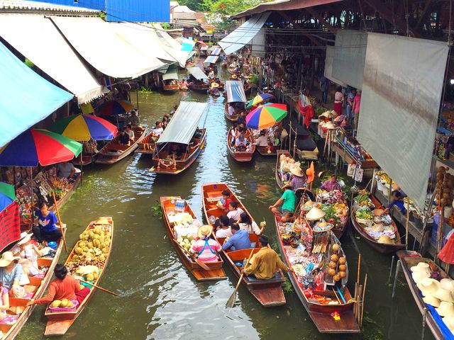 観光客が多く集まるタイの伝統文化、水上マーケットを自由に散策。日中のアユタヤ遺跡から、夜のライトアップされた姿まで、移り行くタイの景色を感じることができます。象乗りの時間もたっぷり含んだ欲張りツアーをお楽しみください。
