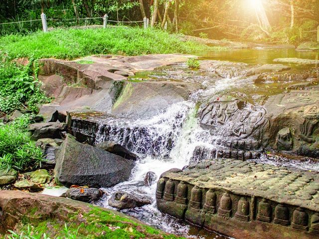 クバール・スピアンはシェリムアップから片道約1.5時間の山のふもとにあり、「頭の橋」という意味を持つ聖地。シェリムアップ川の源流沿いを歩きつつ、巨大な自然岩を削って彫刻された神々たちや川底に刻まれた千本のリンガ、アンコール・ワット型リンガなどを鑑賞しましょう。かつては沐浴すると幸せになれると信じられた聖なる川、見ているだけでパワーが湧いてくるかも。