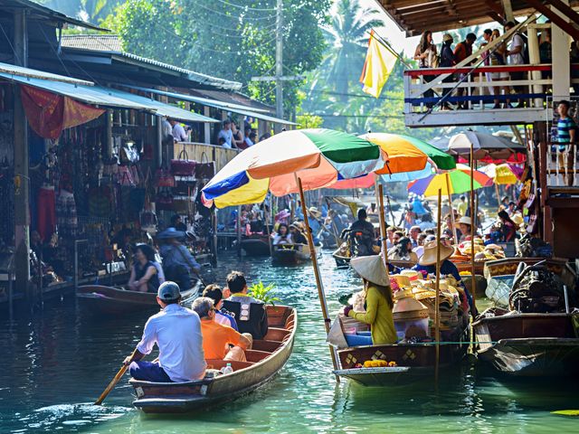 1番人気のダムヌンサドゥアック水上マーケットへご案内。マーケットまではエンジン付きリバークルーズをお楽しみください。専用車でのご案内なのでご友人やご家族、グループ旅行にピッタリ。気兼ねなくプライベートな観光をお楽しみいただけます。
