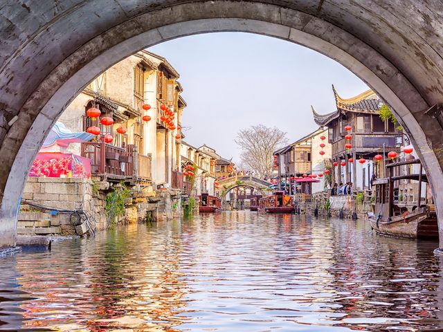江南の運河と庭園で知られる美しい水の都・蘇州は、白壁と黒瓦の家並みが立ち並び、縦横に水路が走ります。蘇州観光の目玉は、やはり庭園と運河沿いの散策。蘇州四大庭園の一つで、世界遺産に登録されている留園や寒山寺、古運河遊覧、虎丘斜塔を訪れます。