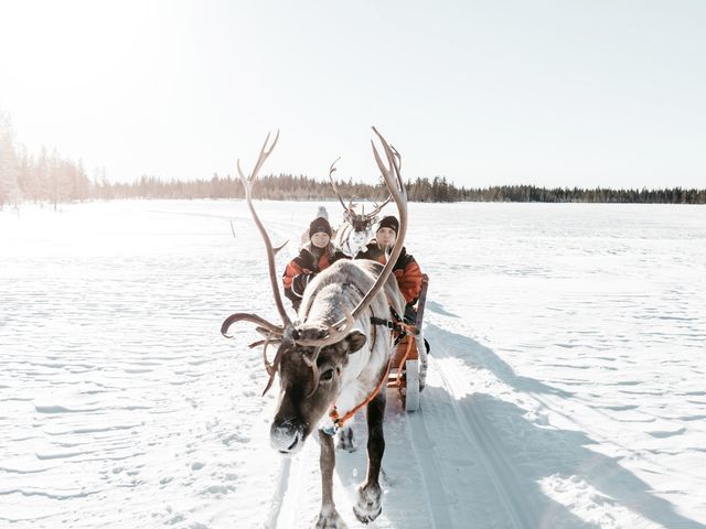 可愛らしいトナカイが引っぱるそりで、神秘的な雰囲気を放つ冬の森へ。大昔からラップランドの人々の衣・食・交通を支えてきたトナカイ達とのふれあいは、忘れられない思い出になりますよ。19:00の回では運が良ければオーロラが見られるかも♪名物のホットベリージュースとスナックもご用意しています。