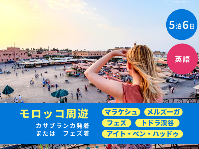 国際線が到着するカサブランカから、南北のモロッコ人気観光地を全て網羅する欲張りな5泊6日ツアー!フェズ、メルズーガ、ワルザザード、マラケシュと北回りで旅を進めます。迷宮の町フェズに2泊、古都散策の時間もたっぷり♪魅力溢れるモロッコを満喫しましょう。
